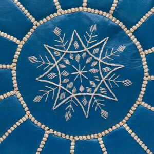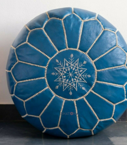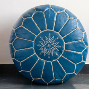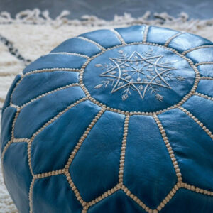 Authentic Round Morrocan ottoman Pouf, leather blue royal stiched handmade pouffe, Morrocan Ottoman footstool bohemian design.Hand-stitched leather pouf that adds to the room without breaking away from your current theme. As it soft base and relaxing appearance brings endless softness and support to your life.