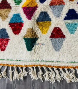 Ce tapis Beni ourain est préparé avec de la laine authentique de la plus haute qualité qui améliore l’aspect général et la beauté du produit. Il peut être ajusté au bureau pour améliorer l’apparence et l’élégance du lieu. Le tapis berbère est le type de tapis marocain qui était utilisé par les membres de la famille royale dans le passé en raison de sa beauté et de son élégance. La douceur du tapis est similaire aux nuages et c’est une pièce vintage que vous pouvez ajuster dans n’importe quelle partie de votre pièce ou seulement étaler lors d’événements et d’occasions spéciales.